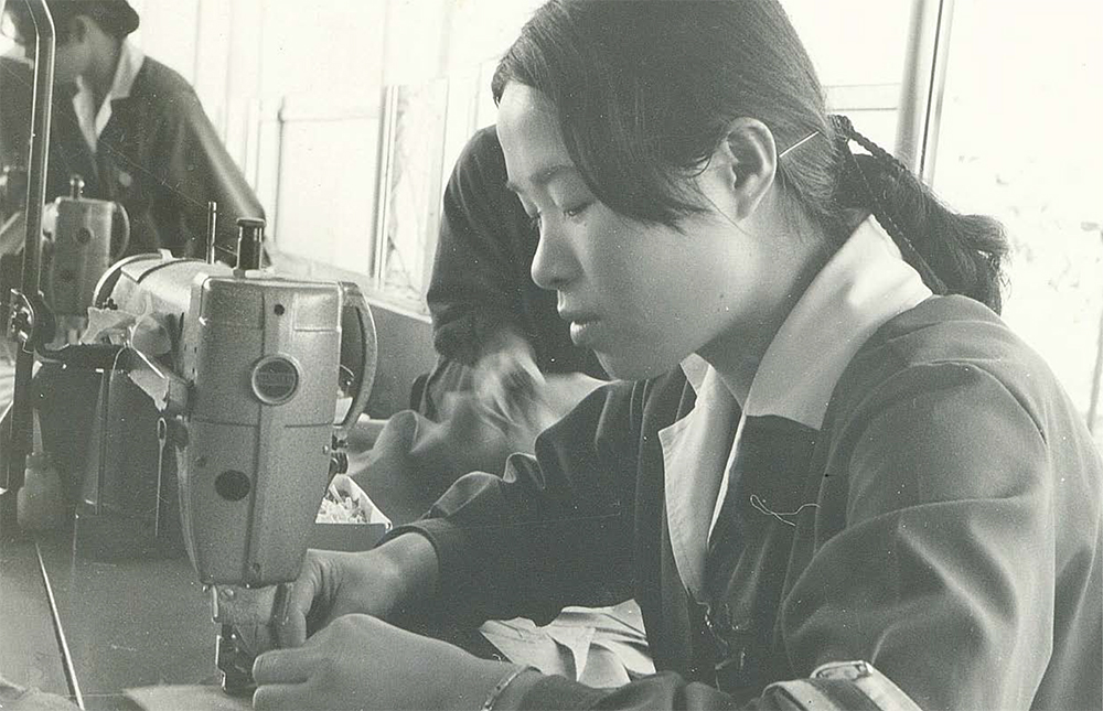 中学を卒業して、非常に大きな縫製工場に勤めました。女性があこがれる職場で、運良く勤めさせていただいたと思っています。